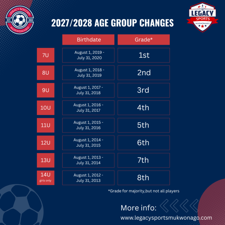 In alignment with U.S. Youth Soccer and WYSA, Legacy Sports Soccer will return to seasonal-year age group placement beginning with the 2026–27 season.